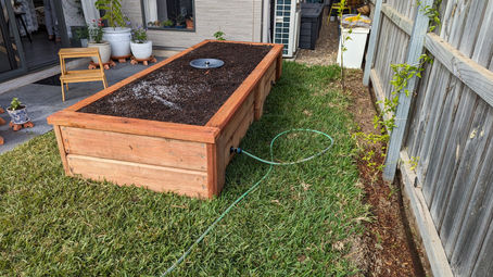 A lady in Gledswood Hills commissioned us to do a single low bed in a large yard, so she could experiment with growing vegetables in a wicking bed.